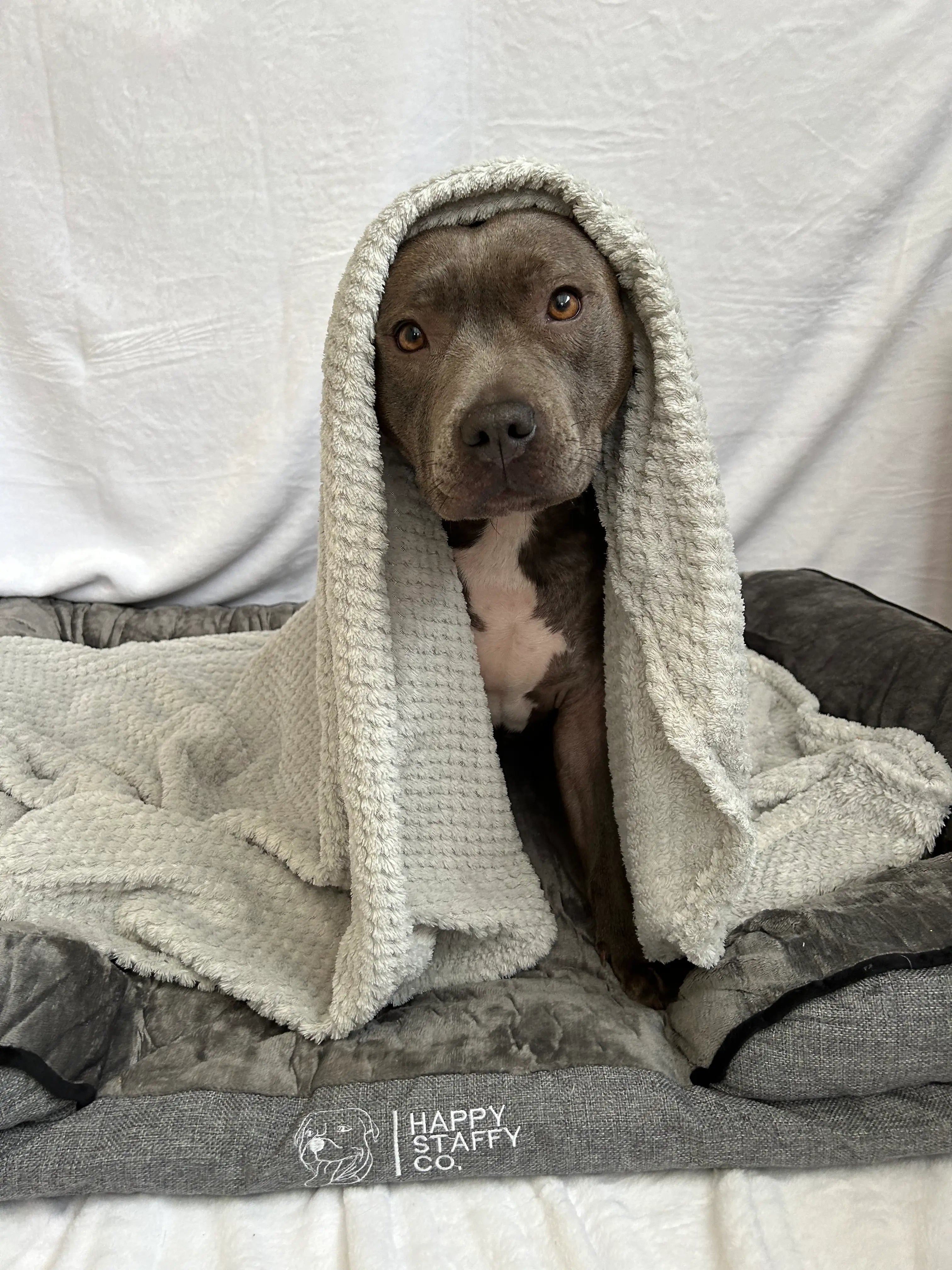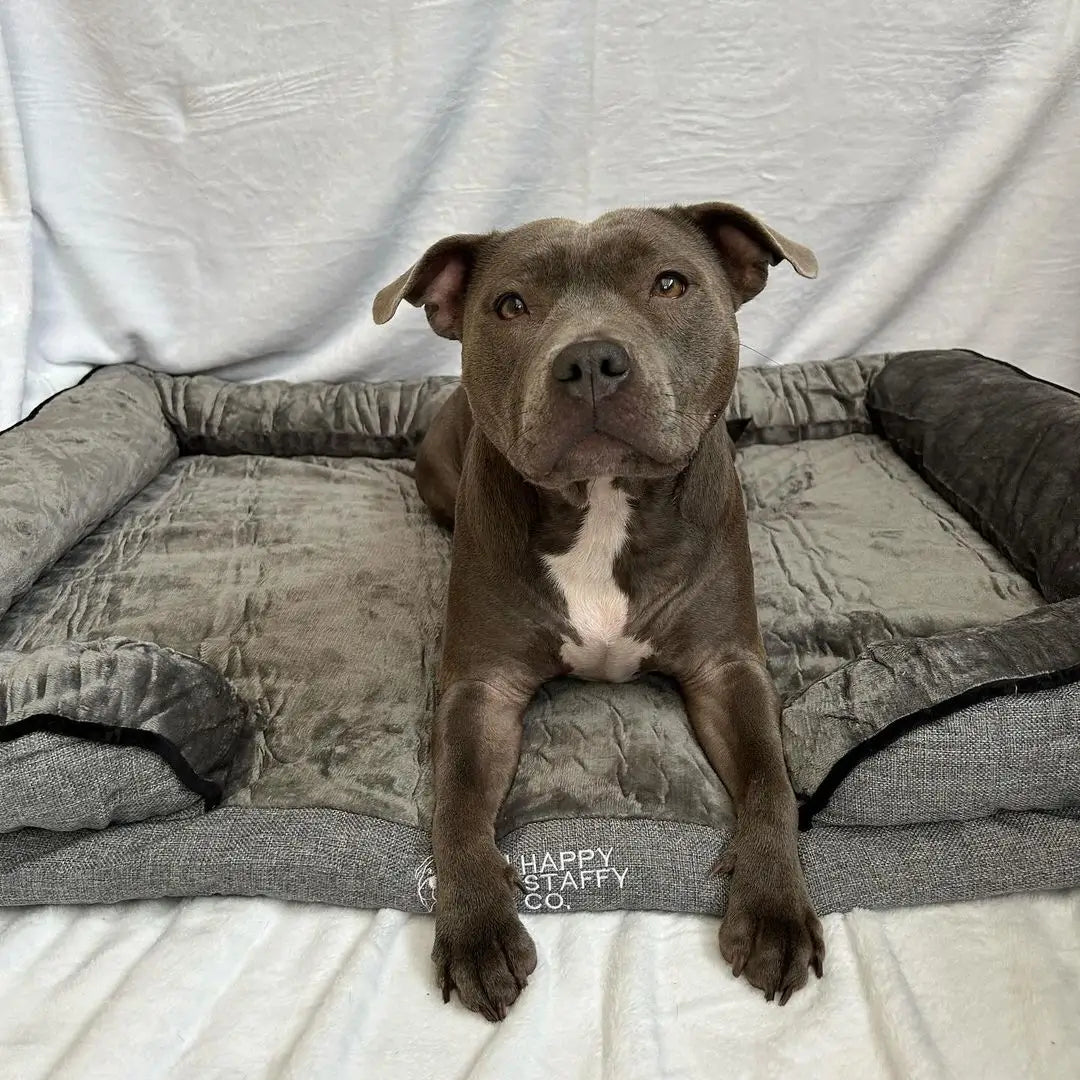Designed with high walls and a soft velvety cover inspired by our popular Pullover Blanket Cover, this bed is like an instant chill pill for your dog.