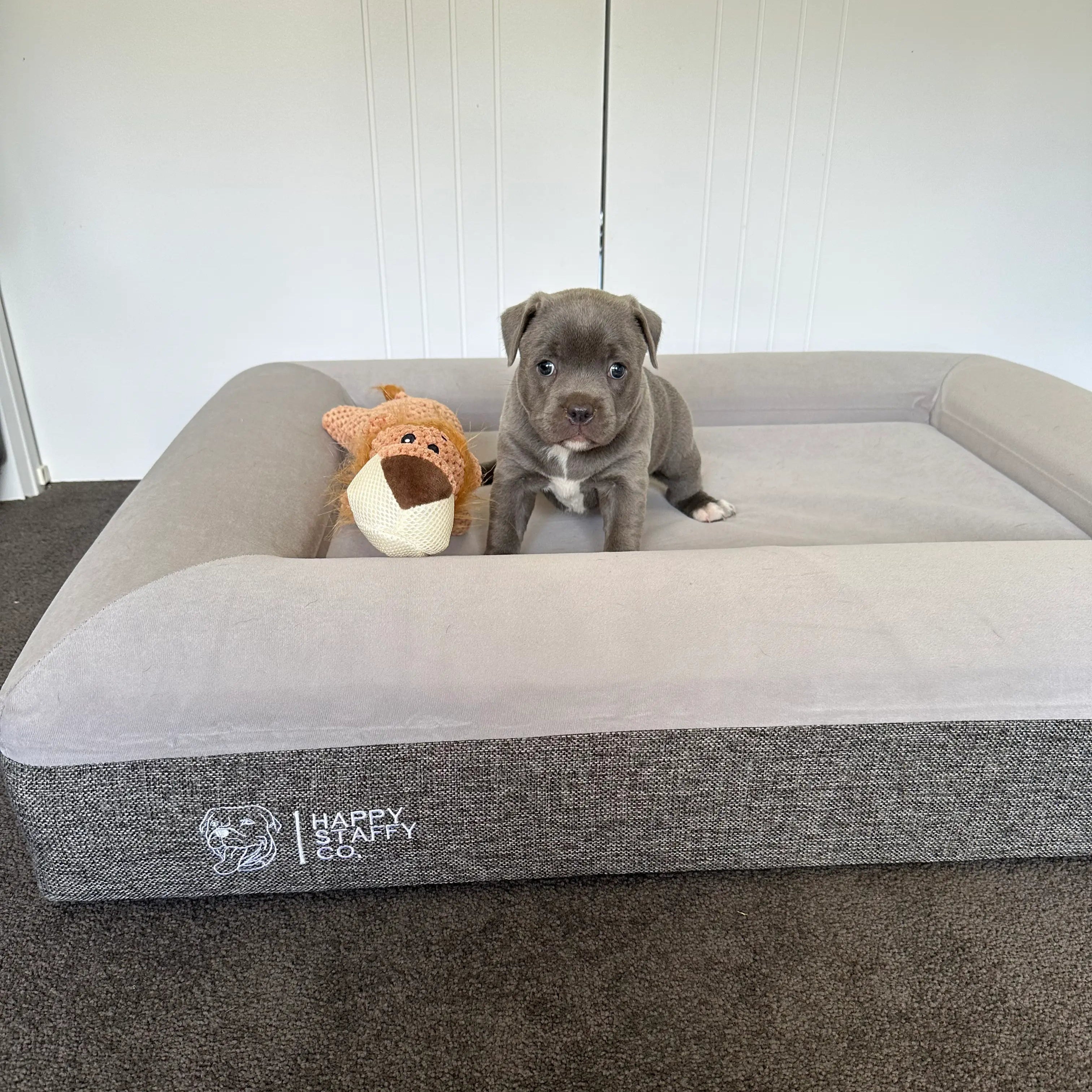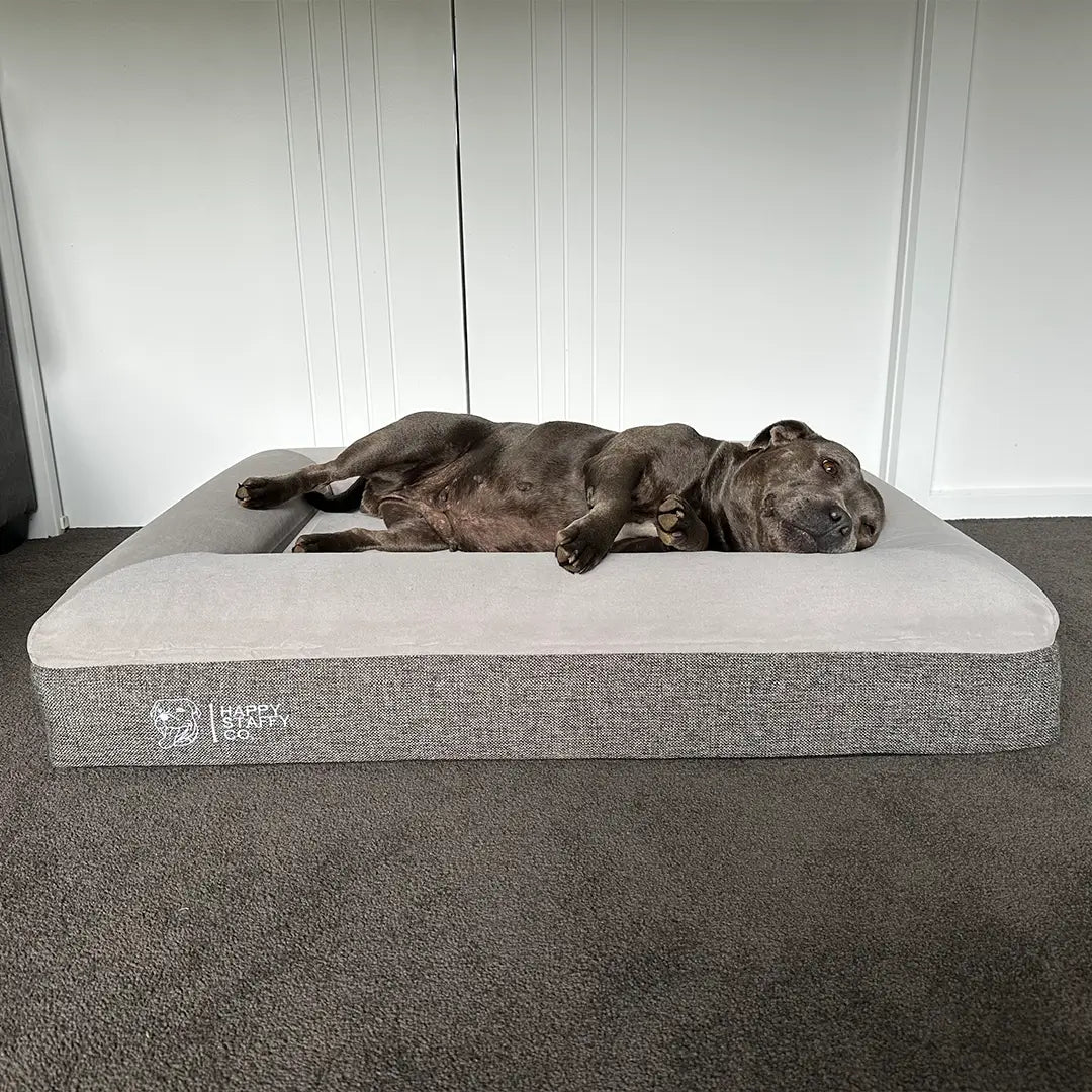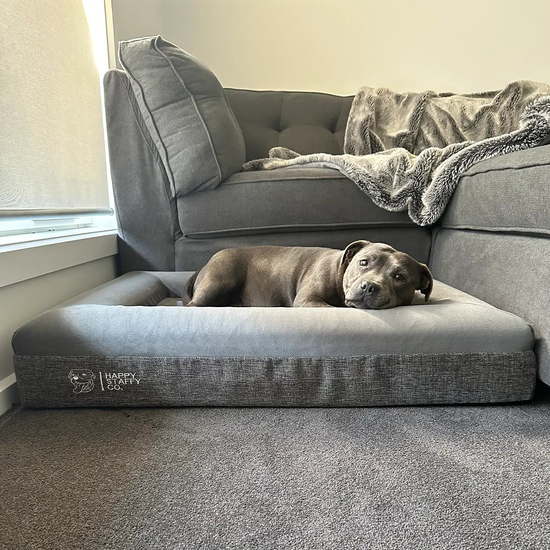 Packed with double layers of supportive orthopedic memory foam to ease their aching joints, our premium beds are designed with your dog’s happiness in mind. Plus, the raised edges give their head and neck the support they need for sweet dreams.