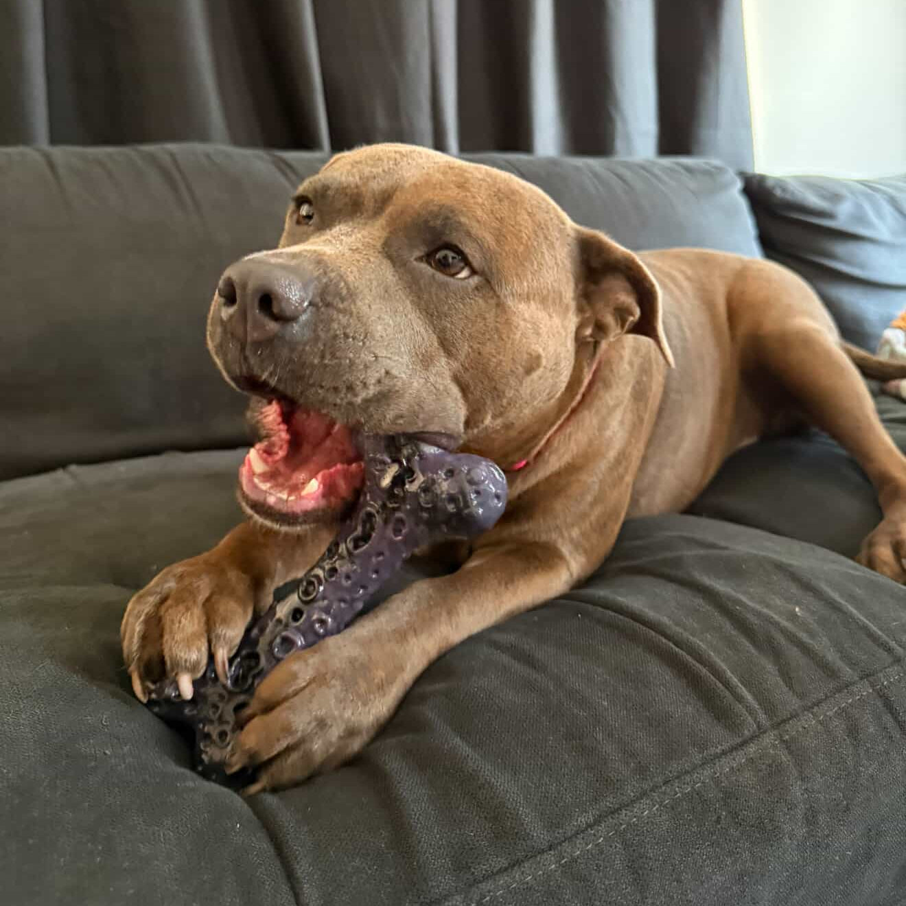Our staffy Douglas absolutely loves these toys and has enjoyed hours of chewing. Highly recommend the toys , and also the team at Happy Staffy and Co .