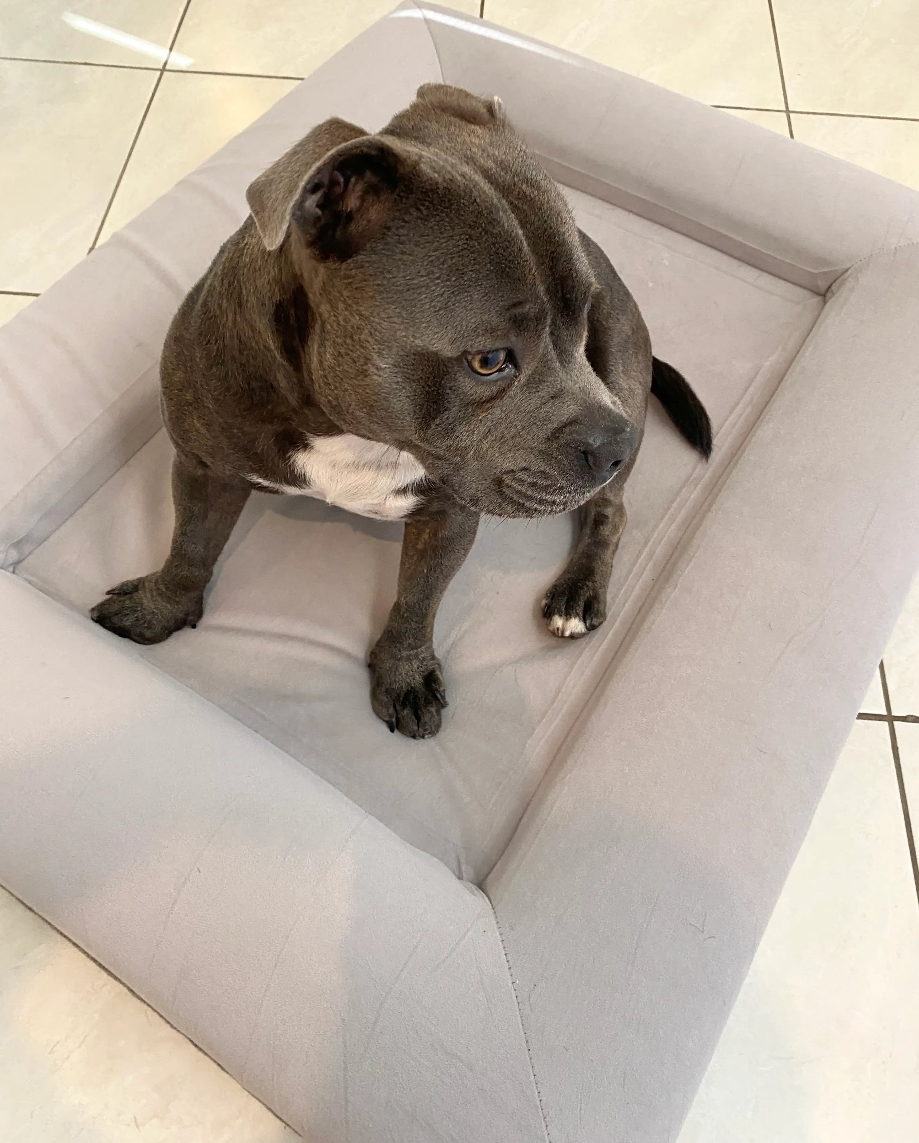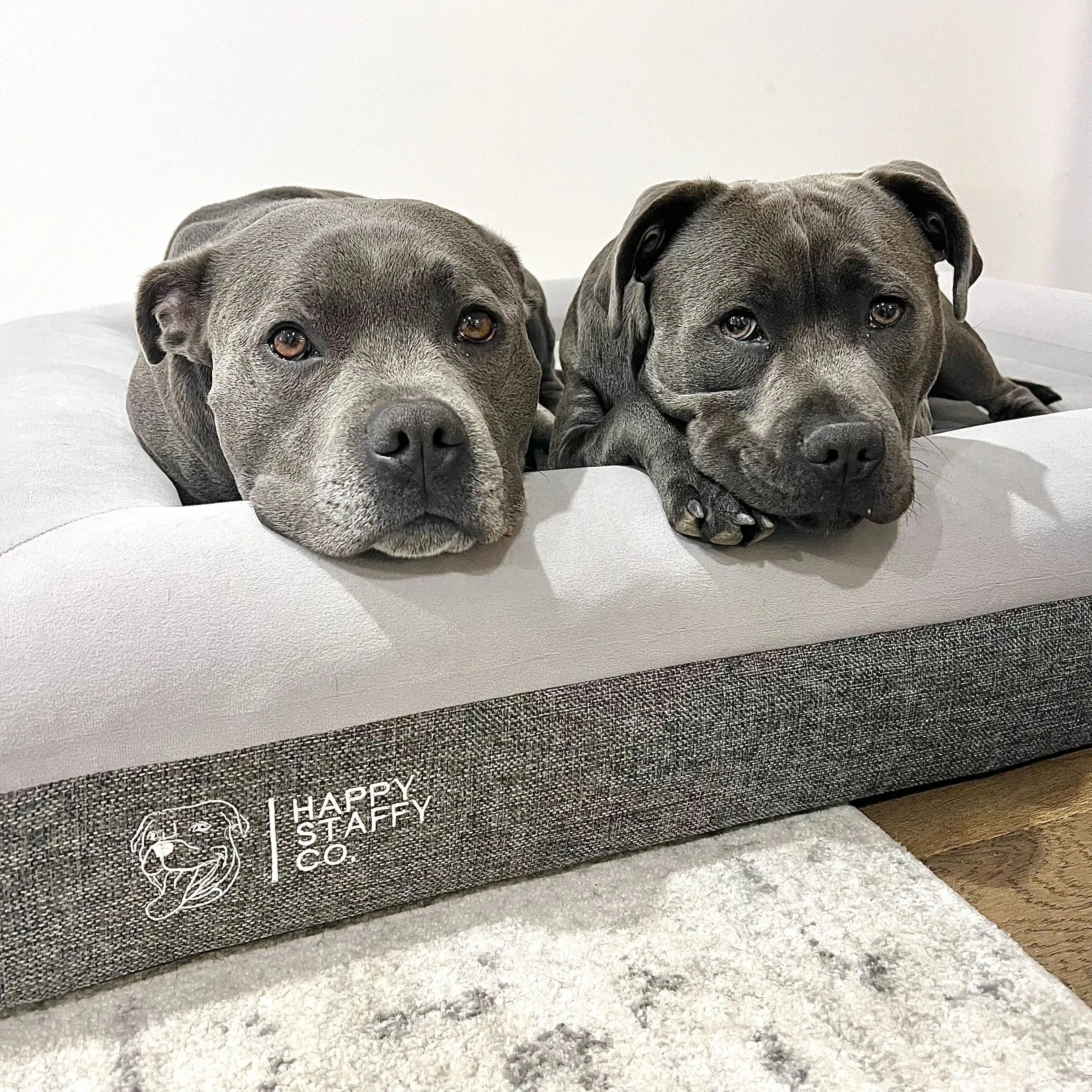 Our beds are designed by Staffy lovers, for Staffys. Over 12 months in the making, we originally designed our Orthopedic Memory Foam Bed for our senior Staffy, Skyla, who suffered from joint issues.