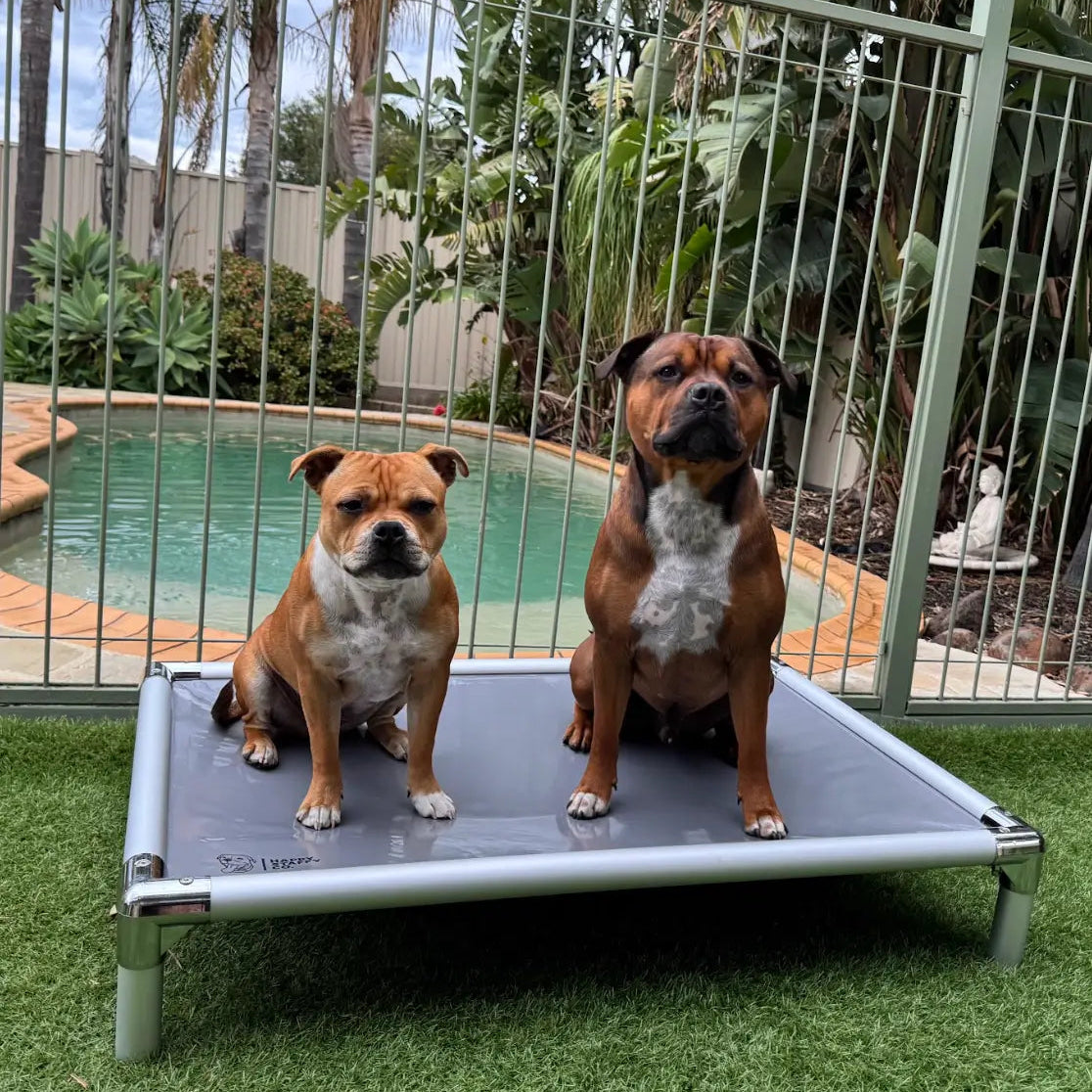 Built for rain, mud, and relentless chewers, this bed features a rust-proof aluminium frame and ChewGuard™ Mat—designed to withstand digging, gnawing, and the elements, all while keeping your pup cool and comfy.