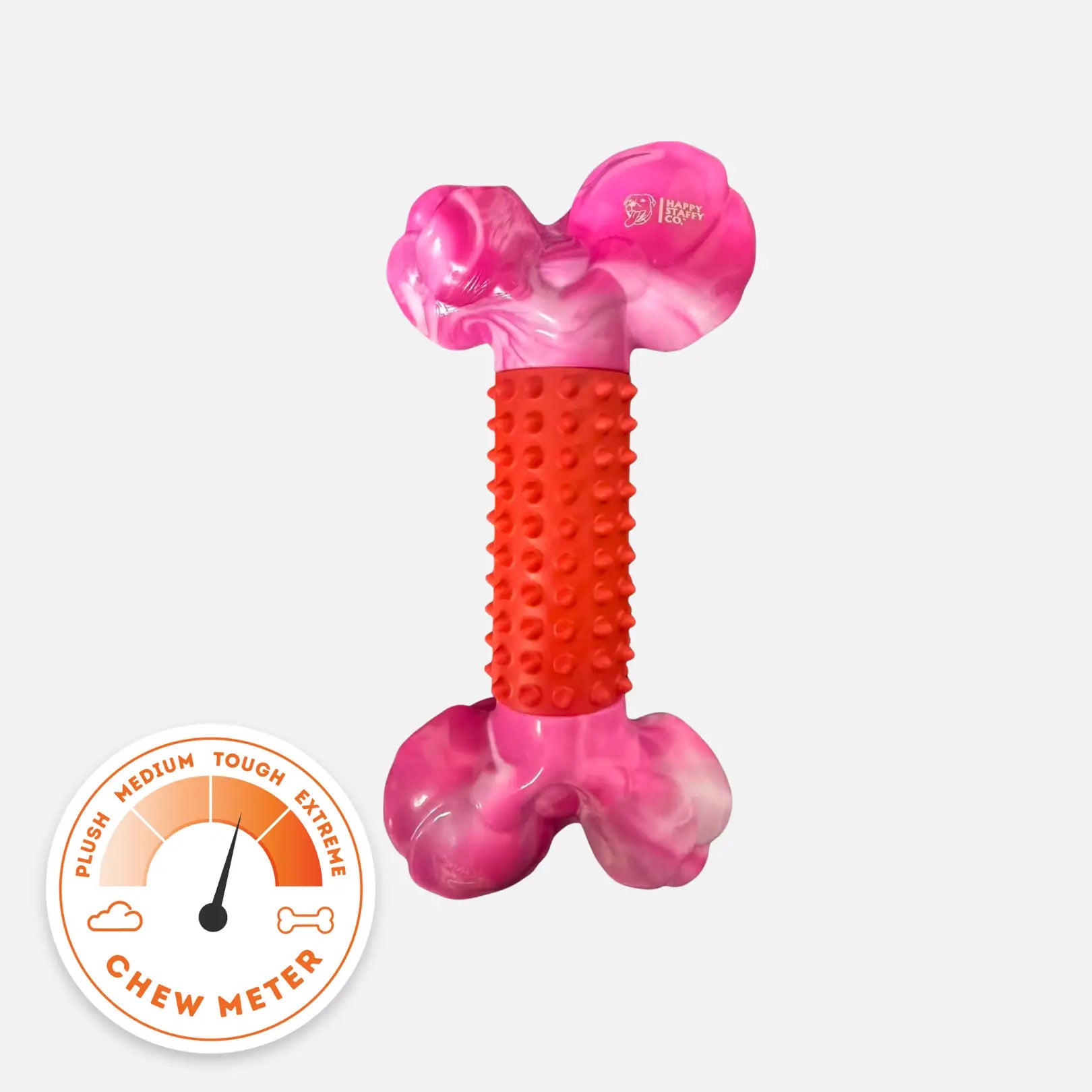 A balanced chew made from durable rubber and ToughTech™ nylon. Tough enough for everyday chewing, with a little flex to keep play comfortable and engaging.